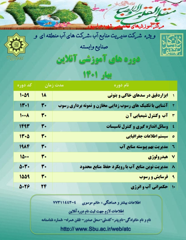 فراخوان بهار 1401 - دوره های فنی تخصصی بخش منابع آب