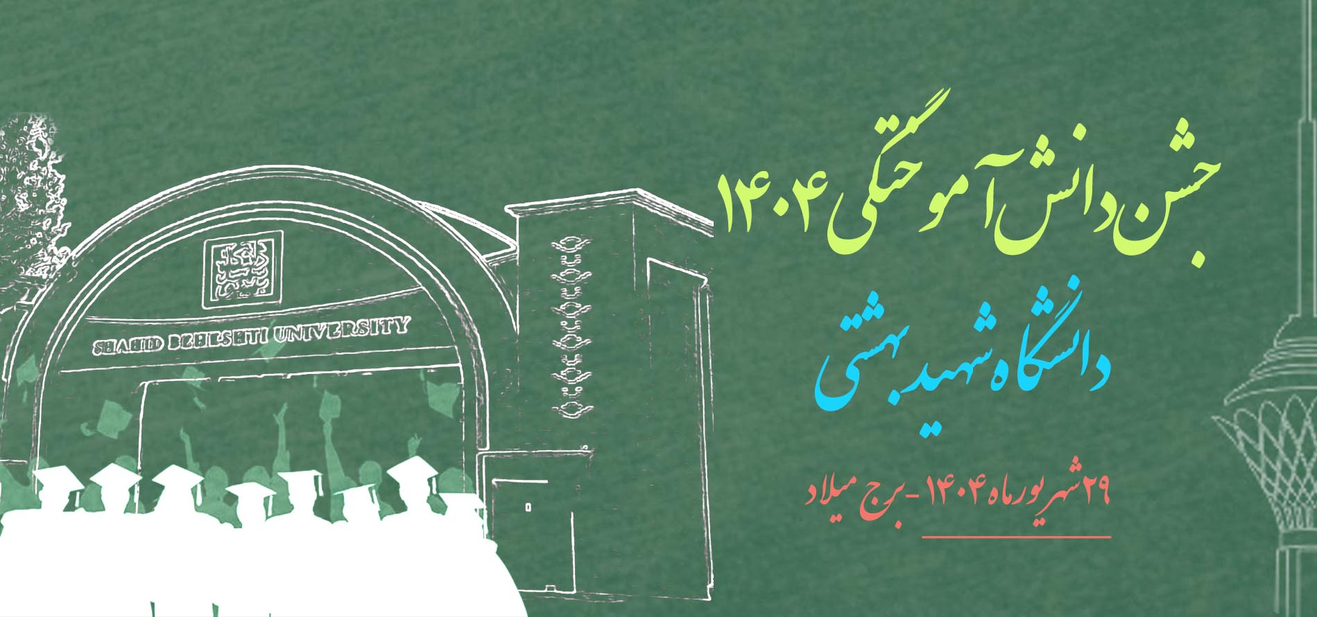 به اطلاع می رساند جشن دانش‌آموختگی سال تحصیلی 1404 ویژه دانش آموختگان ورودی های کارشناسی و دکتری 1400 و کارشناسی ارشد 1402 در تاریخ 29 شهریورماه در محل برج میلاد تهران توسط معاونت فرهنگی و اجتماعی برگزار می شود.