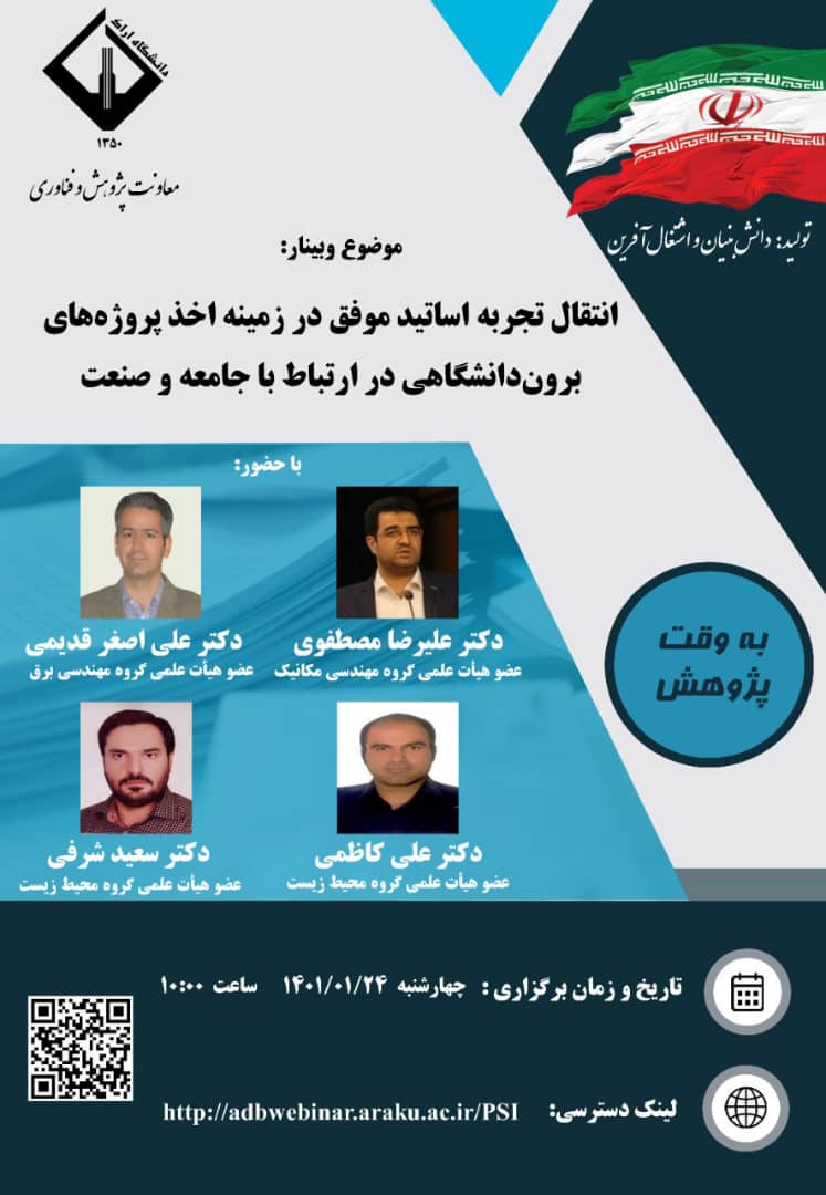 وبینار انتقال تجربه اساتید موفق در زمینه اخذ پروژه های برون دانشگاهی در ارتباط با جامعه و صنعت 1401/1/24
