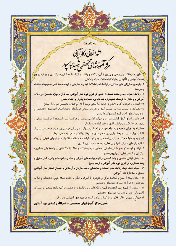 فایل پی دی اف منشور اخلاقی مرکز آموزشهای تخصصی